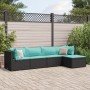 Set muebles de jardín 4 piezas y cojines ratán sintético marrón