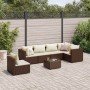 Set muebles de jardín 6 piezas y cojines ratán sintético marrón