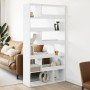 Este clásico separador de ambientes, de elegante diseño, es un complemento decorativo a la vez que práctico para tu decoración actual.Material duradero: La madera de ingeniería tiene una calidad excepcional, con una superficie lisa y también cuenta con fuerza, estabilidad y resistencia a la humedad.Amplio espacio de almacenaje: El divisor está diseñado con 8 espaciosos estantes, que ofrecen un amplio espacio de almacenamiento para guardar revistas, libros, DVD, dispositivos multimedia y otros objetos decorativos bien organizados y al alcance.Estantería versátil: La mampara de oficina puede servir también como librería, por lo que es una opción perfecta para tu hogar.Fácil de mantener: Gracias a su superficie lisa, la estantería divisora es fácil de limpiar con un paño húmedo y requiere menos mantenimiento.Advertencia:Para evitar que vuelque, este producto debe usarse con el dispositivo de fijación a la pared (no incluido).