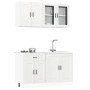 Este juego de 4 armarios de cocina, con un diseño elegante, optimiza el espacio de la cocina y ¡proporciona amplio espacio de almacenaje para tus cosas! Material estable y duradero: La madera de ingeniería es un material duradero y estable con una superficie lisa que es resistente a la humedad, la deformación y la rotura, lo que la convierte en una opción fiable para una variedad de proyectos.Amplio espacio de almacenamiento: el juego de gabinetes de cocina tiene muchos compartimentos y ofrece suficiente espacio para guardar tazones, platos, ollas y otros electrodomésticos de cocina.Patas ajustables: Los gabinetes inferiores cuentan con patas ajustables que se pueden ajustar en altura para adaptarse al diseño de su cocina.Fácil de mantener: Gracias a su superficie lisa, estos gabinetes de cocina son fáciles de limpiar con un paño húmedo y requieren menos mantenimiento. Advertencia:Para evitar que vuelque, este producto debe usarse con el dispositivo de fijación a la pared suministrado. Información útil:Los tornillos y los tacos para el interior de la pared no están incluidos. Busca y utiliza tornillos y tacos adecuados para tus paredes. Si no lo tienes claro, busca asesoramiento profesional. Lee y sigue cada paso de las instrucciones cuidadosamente.La encimera, el fregadero y el grifo no están incluidos en la entrega.