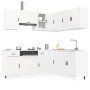 Este juego de 11 armarios de cocina, con un diseño elegante, optimiza el espacio de la cocina y ¡proporciona amplio espacio de almacenaje para tus cosas! Material estable y duradero: La madera de ingeniería es un material duradero y estable con una superficie lisa que es resistente a la humedad, la deformación y la rotura, lo que la convierte en una opción fiable para una variedad de proyectos.Amplio espacio de almacenamiento: el juego de gabinetes de cocina tiene muchos compartimentos y ofrece suficiente espacio para guardar tazones, platos, ollas y otros electrodomésticos de cocina.Patas ajustables: Los gabinetes inferiores cuentan con patas ajustables que se pueden ajustar en altura para adaptarse al diseño de su cocina.Fácil de mantener: Gracias a su superficie lisa, estos gabinetes de cocina son fáciles de limpiar con un paño húmedo y requieren menos mantenimiento. Advertencia:Para evitar que vuelque, este producto debe usarse con el dispositivo de fijación a la pared suministrado. Información útil:Los tornillos y los tacos para el interior de la pared no están incluidos. Busca y utiliza tornillos y tacos adecuados para tus paredes. Si no lo tienes claro, busca asesoramiento profesional. Lee y sigue cada paso de las instrucciones cuidadosamente.La encimera, el fregadero y el grifo no están incluidos en la entrega.