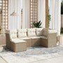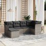 Set de sofás de jardín 6 piezas y cojines ratán sintético negro