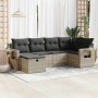 Set de sofás de jardín 6 piezas y cojines ratán sintético negro