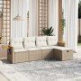Juego de sofás jardín con cojines 5 pzas ratán sintético beige