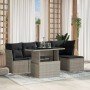 Set de sofás de jardín 6 piezas y cojines ratán sintético negro