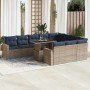 Set sofás jardín y cojines 11 pzas ratán sintético acacia marrón