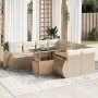 Set muebles jardín 9 pzas y cojines ratán sintético gris claro