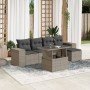 Set de muebles de jardín 6 pzas y cojines ratán sintético gris