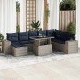 Juego Sofá Jardín 9 Piezas con Cojines Marrón Poli Ratán Acacia