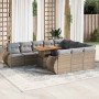 Set de sofás de jardín 11 pzas y cojines ratán sintético negro
