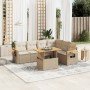 Set sofás jardín y cojines 7 pzas ratán sintético acacia beige
