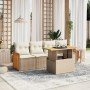 Set sofás jardín y cojines 5 pzas ratán sintético acacia beige